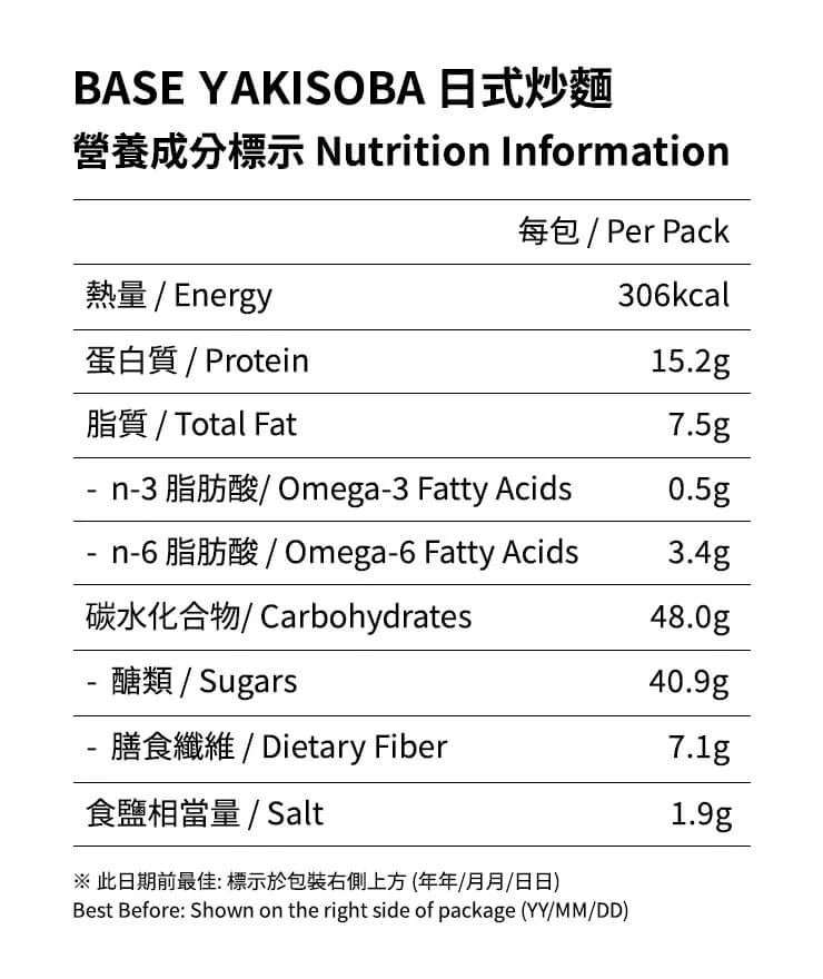 BASE YAKISOBA 日式炒麵所含營養素